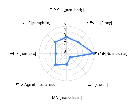 当サイトでは最新のAIに遠く及ばない、私の勝手な直感と選定基準で傾向分析させて頂きます。注意点は点数の大小が評価を決めるものではないということです。レーダーチャートから直感的に自分好みの超悶絶即抜き動画の判断を支援します。エロの時間単価最大化を目指します。