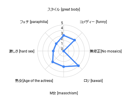 当サイトでは最新のAIに遠く及ばない、私の勝手な直感と選定基準で傾向分析させて頂きます。注意点は点数の大小が評価を決めるものではないということです。レーダーチャートから直感的に自分好みの超悶絶即抜き動画の判断を支援します。エロの時間単価最大化を目指します。