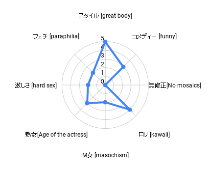 当サイトでは最新のAIに遠く及ばない、私の勝手な直感と選定基準で傾向分析させて頂きます。注意点は点数の大小が評価を決めるものではないということです。レーダーチャートから直感的に自分好みの超悶絶即抜き動画の判断を支援します。エロの時間単価最大化を目指します。